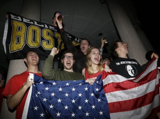 Thank goodness they finally allowed us to come out of hiding last Friday. We were all supposed to be scared shitless, and in hiding weren't we? According to the cable news networks the United States was under siege and if you knew what was good for you, you stayed locked in your home, quivering in fear. It wasn't until I saw drunken college students celebrating in Boston that I realized it was safe. Of course I was always safe, I don't live in Boston. I don't live anywhere near Boston.